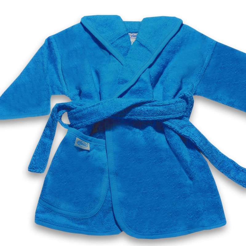 De badjas is gemaakt van 100% zacht katoen en voorzien van een capuchon die het hoofdje heerlijk warm houdt.